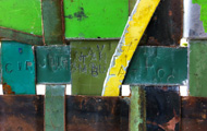 Woven metals, steel banding, steel cabinetry, saw blades, copper wire, copper pipe, aluminum, tin, barbed wire, text impressions